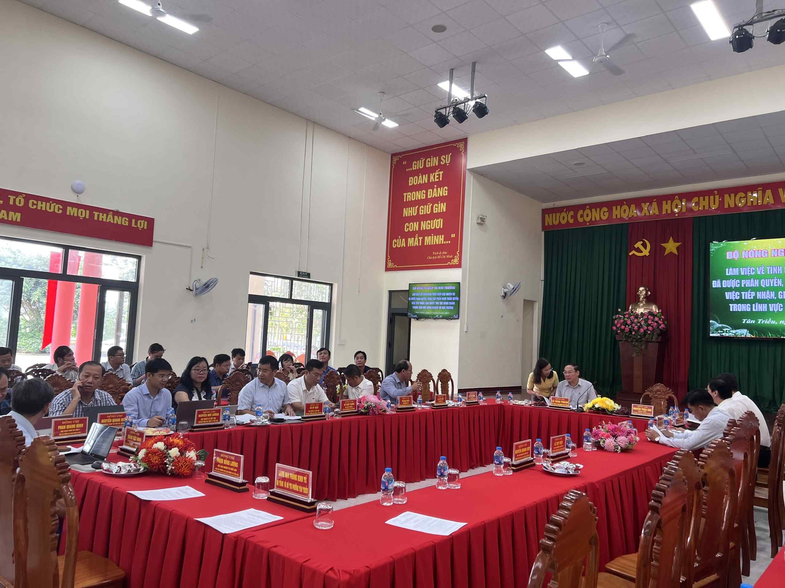 Hướng dẫn các nội dung về lĩnh vực đất đai khi thực hiện chính quyền địa phương hai cấp tại tỉnh Hà TĩnhTính đến hết tháng 10/2025, 34 công chức đã phối hợp cùng các Sở Nông nghiệp và Môi trường làm việc trực tiếp tại 633 xã, phường và tổ chức hơn 40 buổi tập huấn với gần 700 đơn vị cơ sở, thu hút khoảng 2.000 người tham dự. Các nội dung tập huấn tập trung vào đăng ký đất đai, cấp Giấy chứng nhận quyền sử dụng đất, phân cấp thẩm quyền và cải cách thủ tục hành chính, giúp đội ngũ cán bộ địa phương nắm vững quy định mới và thực thi hiệu quả.