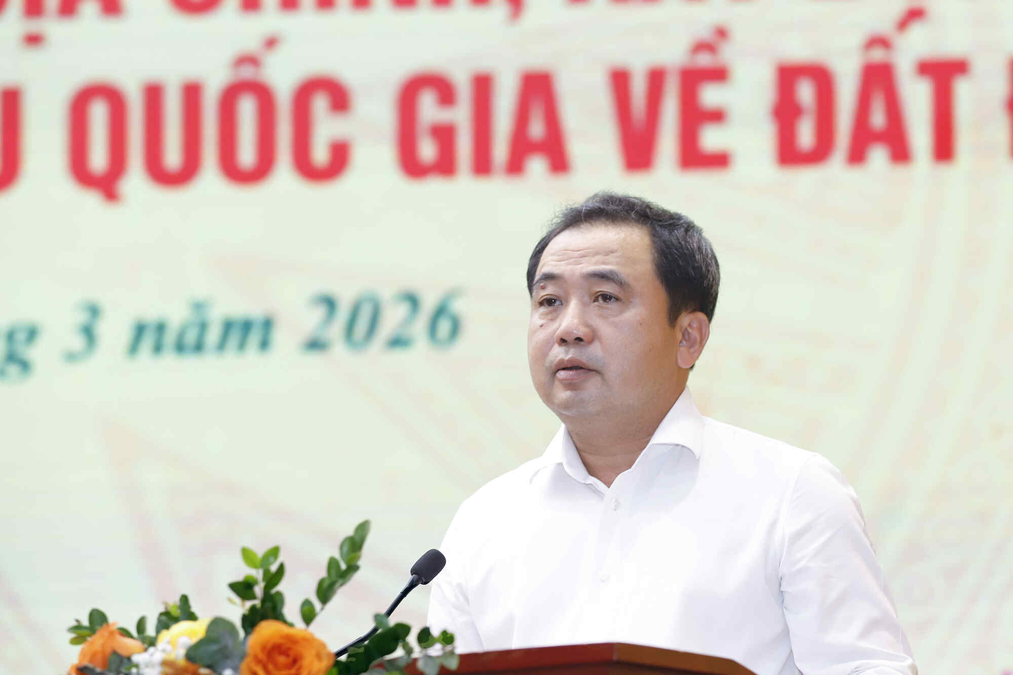 Đồng chí Trịnh Việt Hùng, Ủy viên Trung ương Đảng, Thứ trưởng Thường trực Bộ Nông nghiệp và Môi trường phát biểu chỉ đạo Hội nghị.Theo nội dung Kế hoạch số 2959/KH-BNNMT-BCA được trình bày tại Hội nghị, mục tiêu là hoàn thành việc đo đạc, lập bản đồ địa chính, lập hồ sơ địa chính và xây dựng, hoàn thiện cơ sở dữ liệu quốc gia về đất đai trên phạm vi toàn quốc trong năm 2026, bảo đảm toàn bộ các thửa đất được tạo lập dữ liệu số.