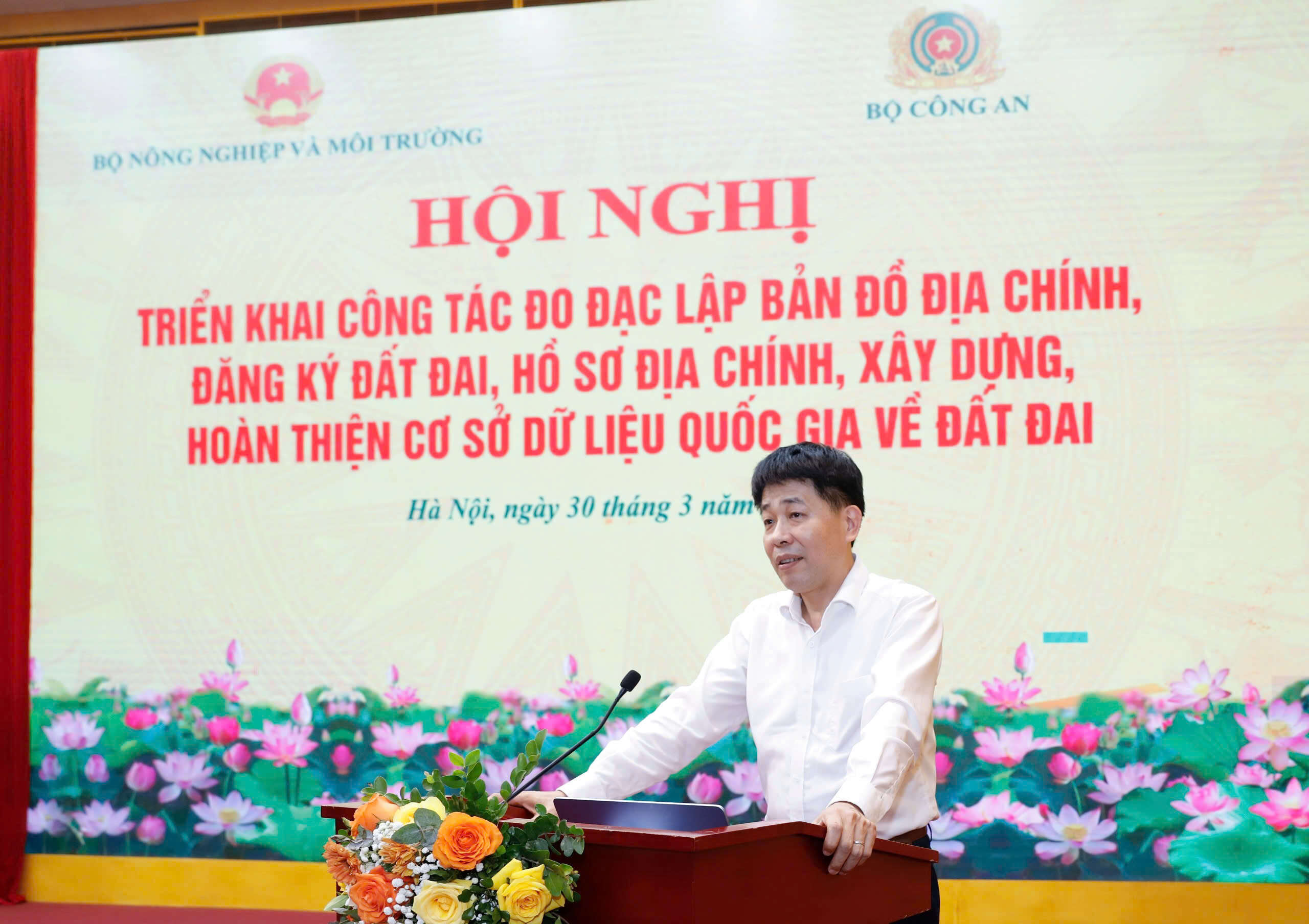Hội nghị nhằm triển khai Kế hoạch số 2959/KH-BNNMT-BCA ngày 29/3/2026 của Bộ Nông nghiệp và Môi trường và Bộ Công an về tăng cường, đẩy mạnh công tác đo đạc, lập bản đồ địa chính, đăng ký đất đai, lập hồ sơ địa chính và hoàn thành cơ sở dữ liệu quốc gia về đất đai.