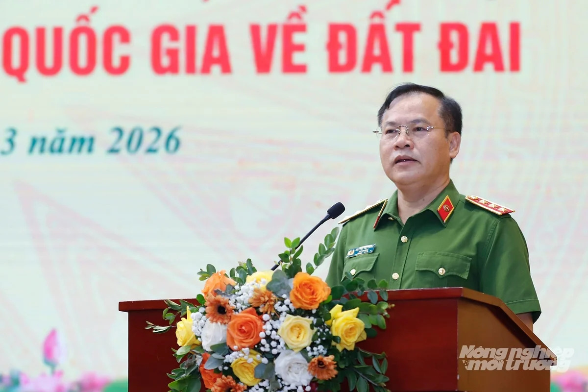 Thượng tướng Nguyễn Văn Long, Ủy viên Trung ương Đảng, Thứ trưởng Bộ Công an phát biểu tại Hội nghịTham dự và phát biểu chỉ đạo tại Hội nghị, Đồng chí Trịnh Việt Hùng, Ủy viên Trung ương Đảng, Thứ trưởng Thường trực Bộ Nông nghiệp và Môi trường nhấn mạnh mục tiêu hoàn thành cơ sở dữ liệu quốc gia về đất đai trong năm 2026 là nhiệm vụ không thể lùi; yêu cầu các bộ, ngành, địa phương tổ chức triển khai đồng bộ, quyết liệt.